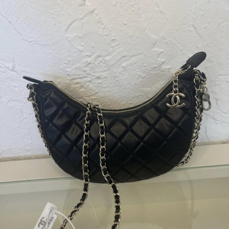 Quilted Chain Around Hobo Black