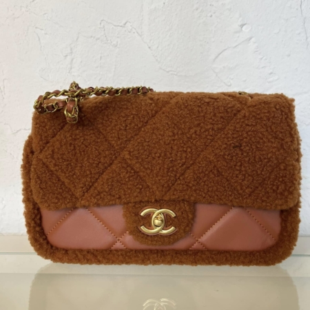 Winter Collection Beige Brown Teddy Shearling Medium flapm in High Quality