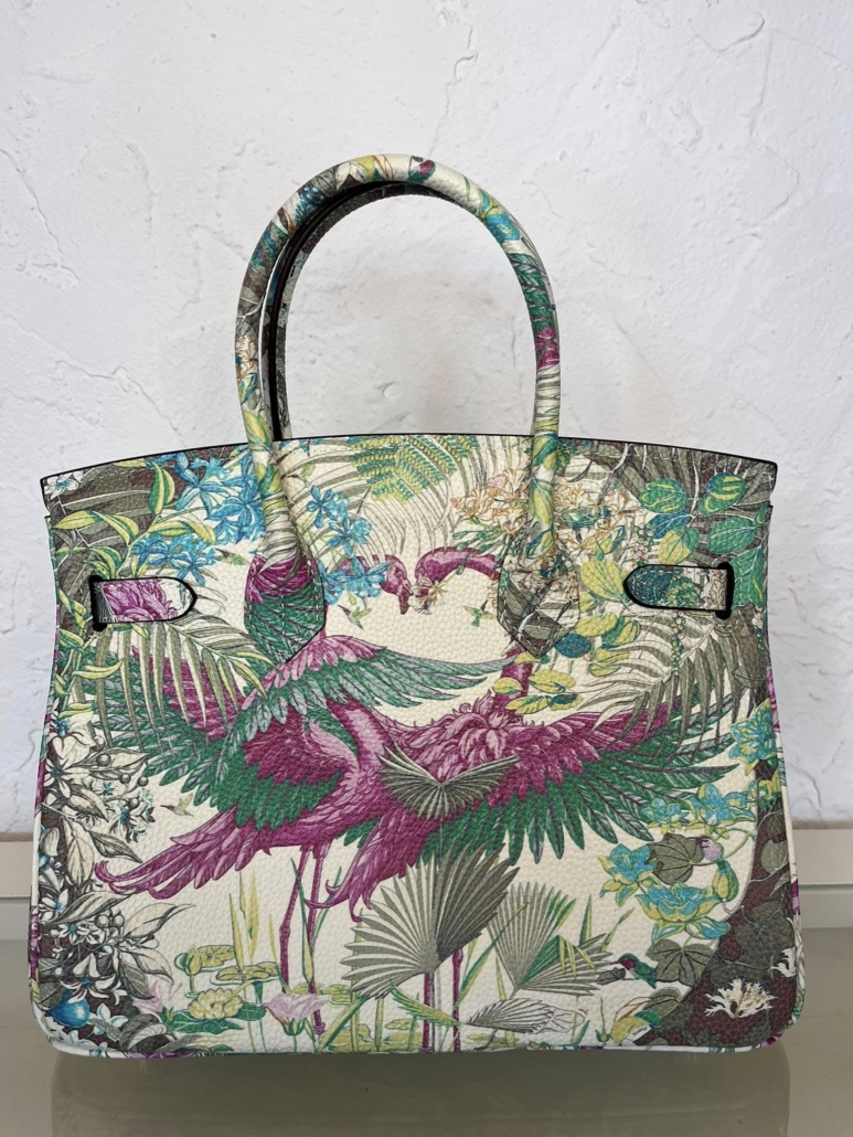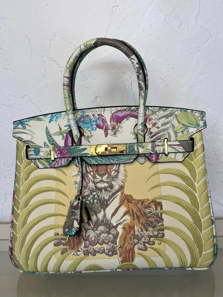 Eye-Catching Graffiti and Animal Print Design: The vibrant graffiti and contrasting animal jungle pattern create a bold and unique statement. This handbag is sure to turn heads and add a touch of personality to any outfit. This is made of togo leather and comes in high quality.