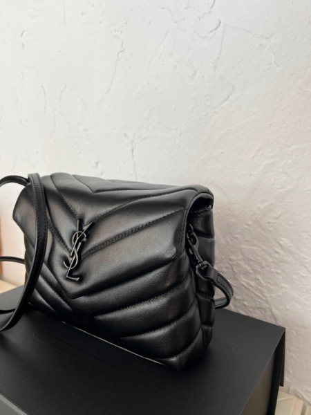 The Loulou Small shoulder bag in black is a sophisticated accessory for both day and night. Its soft quilted calfskin base is treated with a combination of paper printing, which gives it its grainy texture, and smoothing tanning processes. Without a doubt, this piece is a true treasure that will never go out of style, thanks to iconic details. The bag is comes with a chain strap in black.