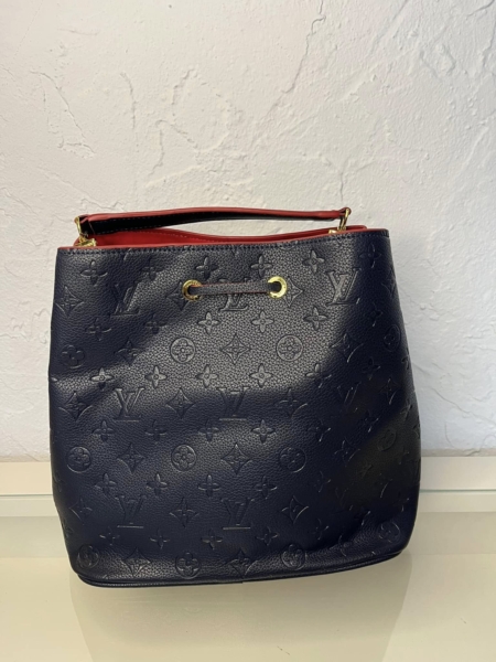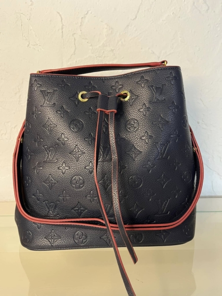 This MM bucket bag in marine blue and red is an iconic accessory. The exterior is crafted from tonal Monogram leather. Perfect for any season, this style can be carried in multiple ways thanks to a top handle and leather shoulder strap.
