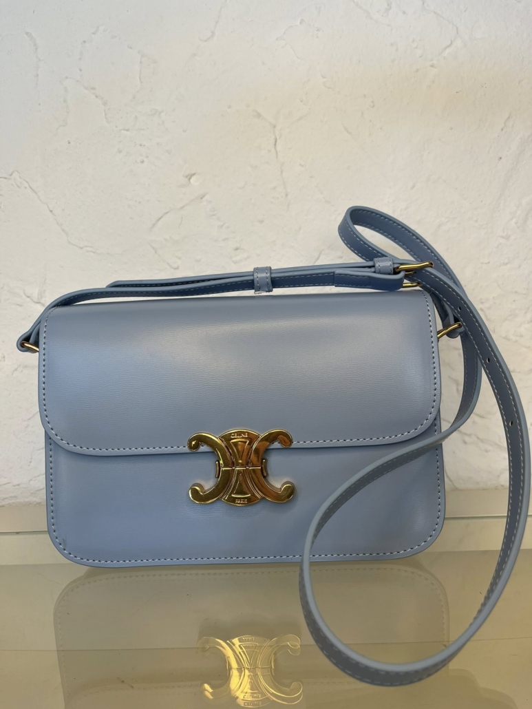 HQ Calfsskin leahter bag with gold finishing details. You can wear the bag cross-body and schoulder carry. The bag has an metallic closure and three inner compartments.