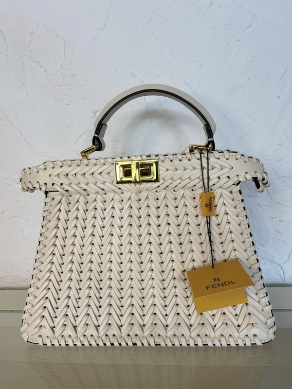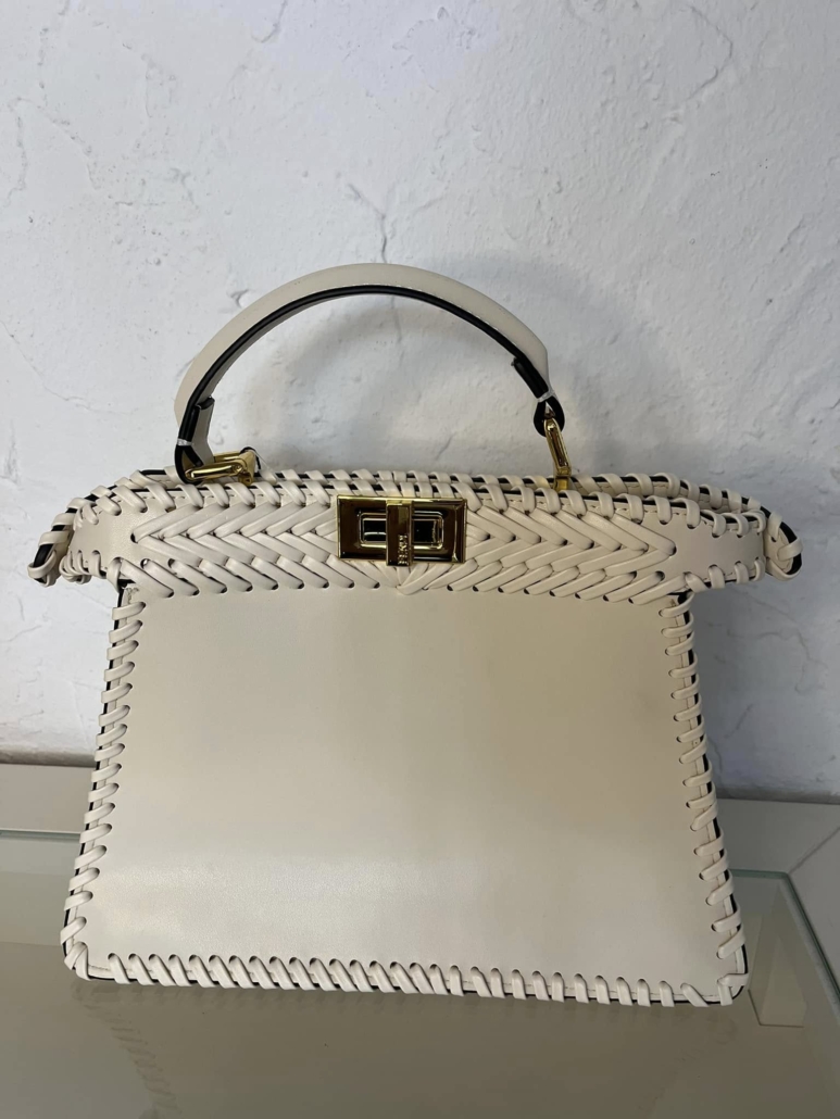 HQ Iconic ISeeU bag. This bag is a timeless icon launched in 2009.  Crafted from white calfskin and embellished with handmade tone-on-tone leather and suede braiding.